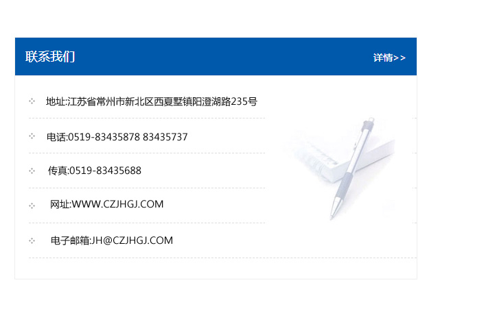 傳真:0519-83435688    郵編:213135    網址:WWW.czjhgj_com.hjchangan.com    電子郵箱:JH@czjhgj_com.hjchangan.com